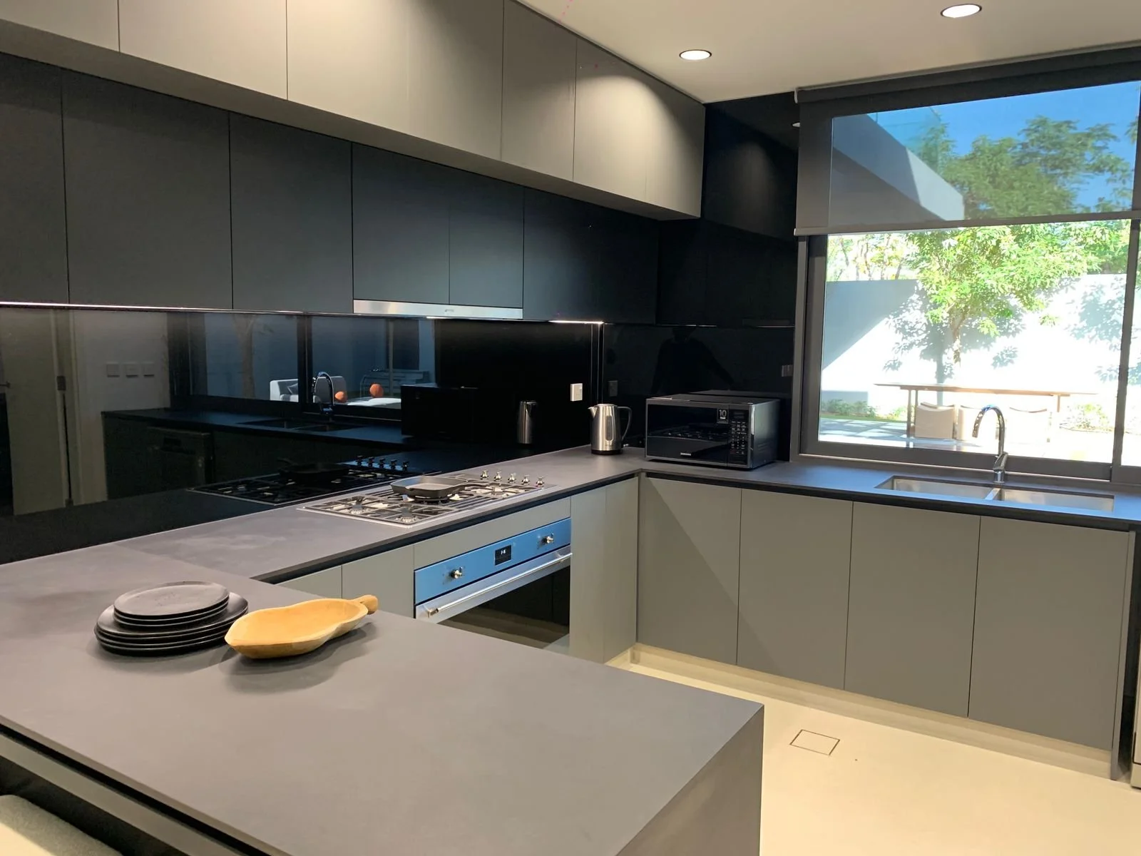 Luxury 4-Bedroom Villa with modern landscape, blending elegant outdoor living, stylish seating, and lush greenery.